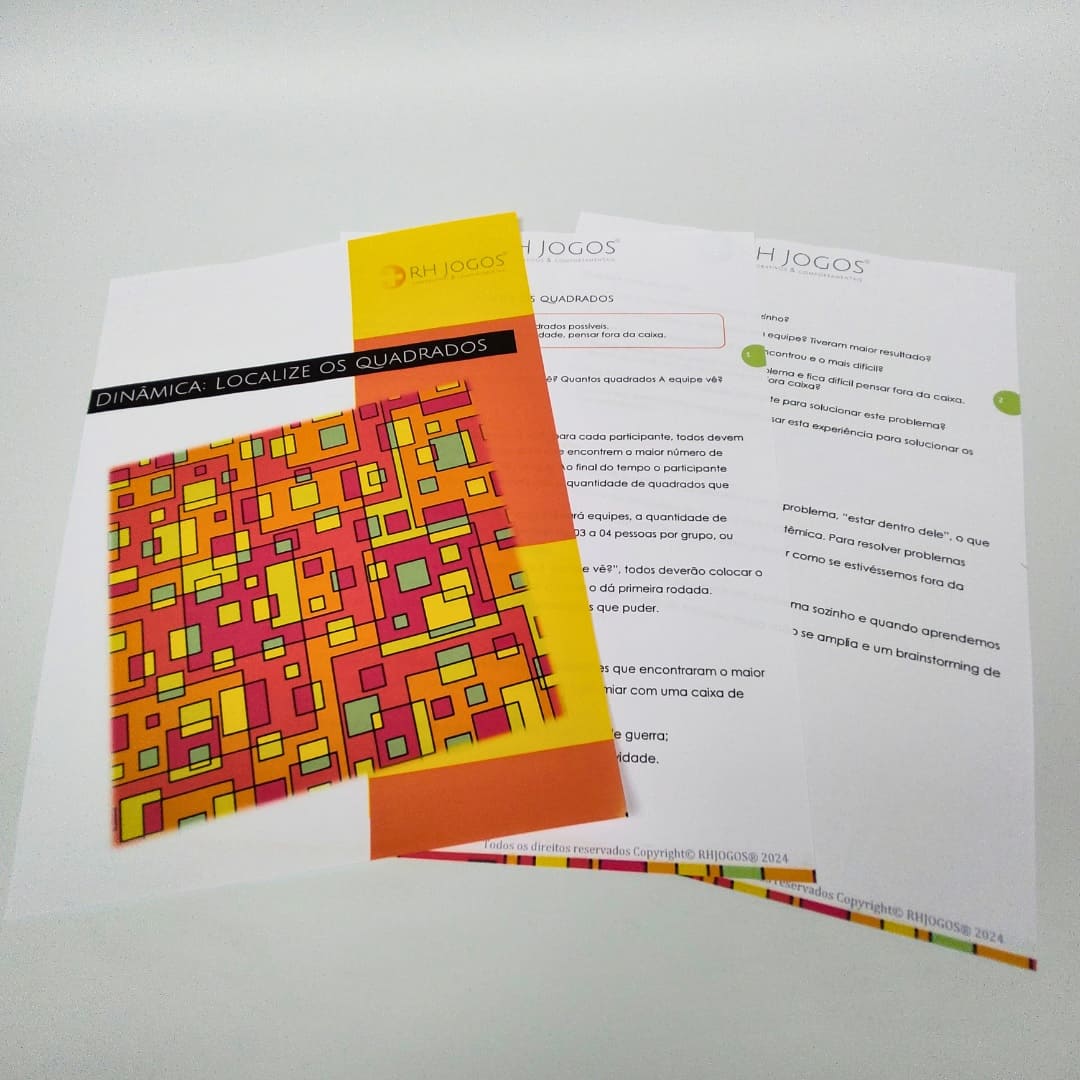A dinâmica Localize os Quadrados é um desafio visual inteligente que desenvolve foco, criatividade e trabalho em equipe. Primeiro individual, depois em grupo, os participantes descobrem como diferentes percepções ampliam resultados e estimulam o pensamento fora da caixa. Simples, rápida e perfeita para treinamentos corporativos.