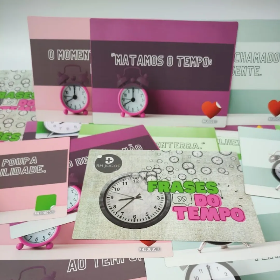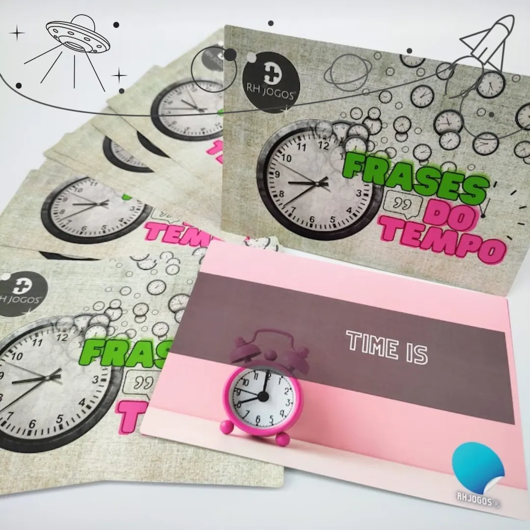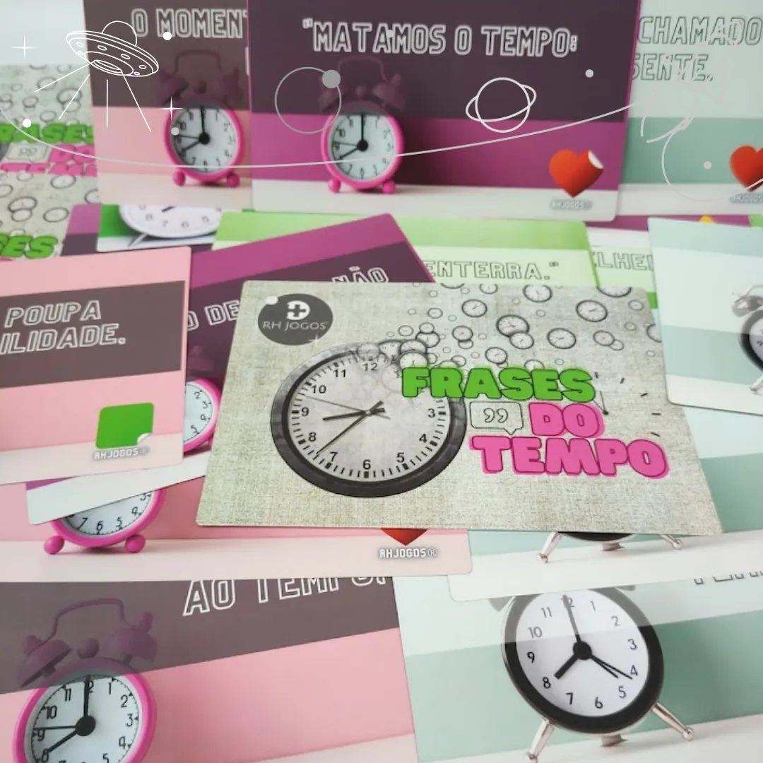 Jogo Frases do Tempo é uma ferramenta lúdica exclusiva e 100% física que une aprendizado e interação em uma proposta simples, porém profunda: os participantes recebem uma metade de uma frase e devem encontrar o dono da outra parte. Todas as frases estão relacionadas à gestão do tempo, produtividade e escolhas diárias.