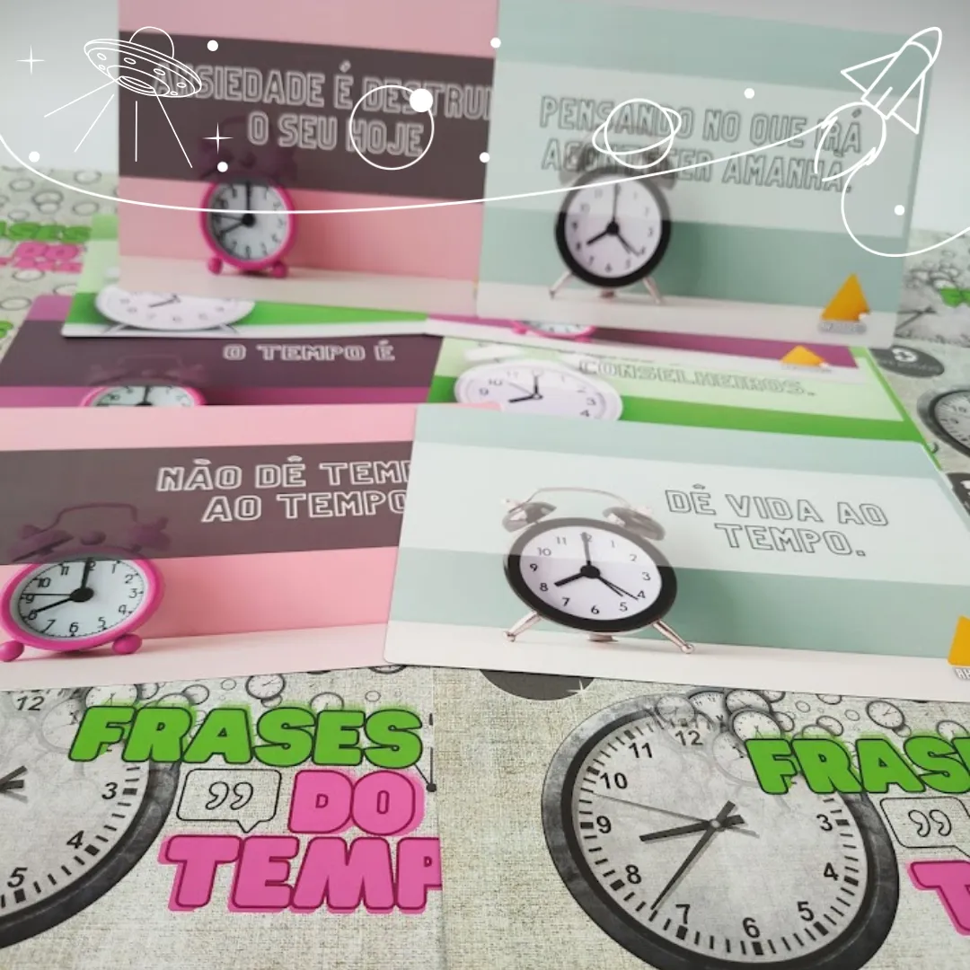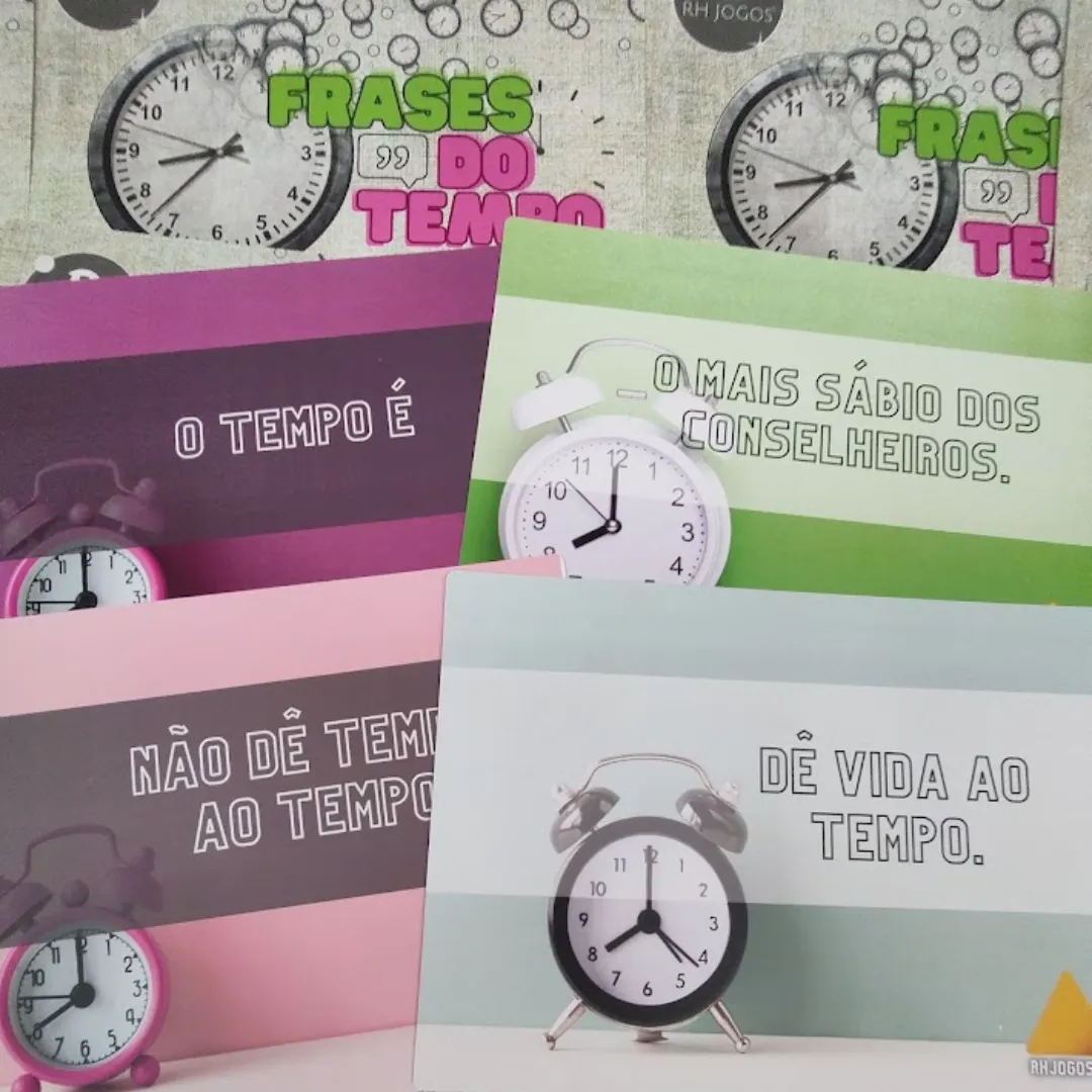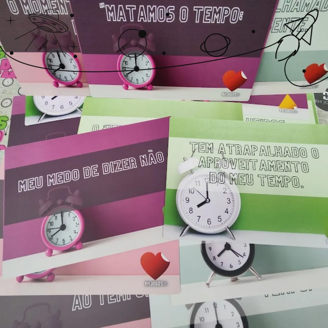 Jogo Frases do Tempo é uma ferramenta lúdica exclusiva e 100% física que une aprendizado e interação em uma proposta simples, porém profunda: os participantes recebem uma metade de uma frase e devem encontrar o dono da outra parte. Todas as frases estão relacionadas à gestão do tempo, produtividade e escolhas diárias.